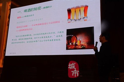 發(fā)布會(huì)現(xiàn)場(chǎng)首先通過(guò)宣傳片向觀眾展示了新上市啤酒的釀造工藝、品牌內(nèi)涵以及獨(dú)有的酒杯文化,體現(xiàn)出SPP完美的品質(zhì)。Spp精釀啤酒中國(guó)區(qū)產(chǎn)品總監(jiān)王新紅先生對(duì)新上市啤酒的品牌文化和市場(chǎng)戰(zhàn)略進(jìn)行了精彩的講解,并對(duì)核心產(chǎn)品SPP精釀皮爾森啤酒做了詳細(xì)介紹,其產(chǎn)品的外觀和口感等整體檔次讓現(xiàn)場(chǎng)經(jīng)銷(xiāo)商贊嘆不已,紛紛詢(xún)問(wèn)代理進(jìn)貨事宜,現(xiàn)場(chǎng)異?;鸨?。