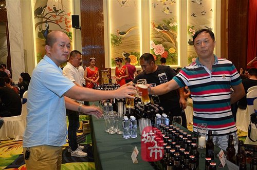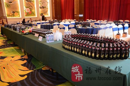 主辦方在現(xiàn)場為來賓提供了十來款啤酒用于品嘗,擺放整齊。