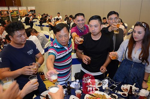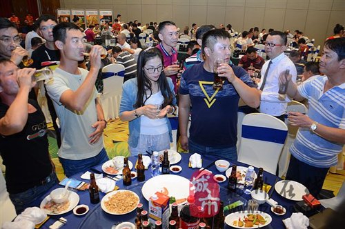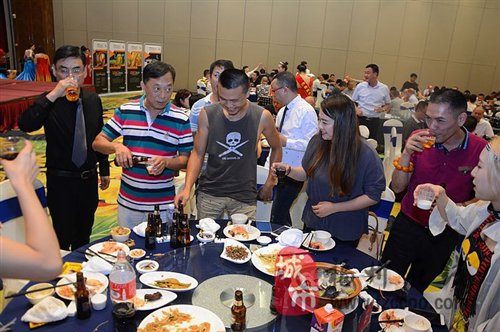 介紹活動結(jié)束后,所有來賓開始享用SPP提供的品酒會?,F(xiàn)場提供了十來款啤酒用于品嘗,配合精心準(zhǔn)備的晚宴,讓來賓贊不絕口,開懷暢飲,現(xiàn)場氛圍到達(dá)頂峰。很多客戶表示明天就會開始安排進(jìn)貨,相信全國的消費(fèi)者很快就能享用到獨(dú)具特色的SPP精釀純麥啤酒。